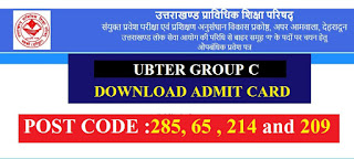 UBTER Uttarakhand Board of Technical Education has released UBTER Group C Admit Card 2017 for POST CODE 285, POST CODE 65 , POST CODE 214 and POST CODE 209 ,Candidates who have applied for the above posts can check here all detail about Group C post code name ,exam date , admit card download and other details. Read the below information carefully and download your admit card.