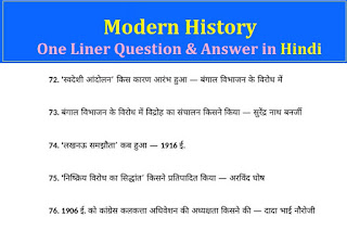 Modern History one liner question & Answer in Hindi - Download PDF :